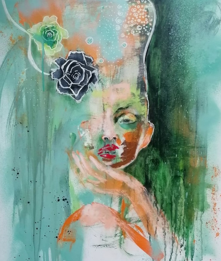 Tina celebrates an alternative view of beauty. Her mark-making and semi-abstraction, seeks to convey, that perceived imperfection is beautiful. We should not strive incessantly for outward beauty, but embrace our ‘flaws’ and ‘imperfections’.